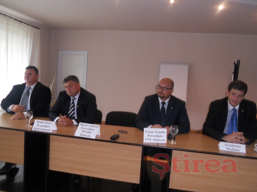 Acum că tot „s-a stricat căruţa-n drum”, Mădălin Teculescu, Radu Paros, Gigi Manea, onorabili consilieri locali ai municipiului Slobozia, dar şi viceprimarul aceluiaşi municipiu, stimabilul Cezar Zamfir au invitat reprezentanţii presei locale, ca să anunţe că ei şi-ai lor vor să se unească, cică, pentru a se lupta cu PSD. Nu ştim a cui a fost ideea. Ştim însă sigur că, cei patru, proaspăt deveniţi „fraţi de cruce”, au şi stabilit cine va fi prima victimă, la momentul în care vor pecetlui coaliţia, alianţa sau cum se va mai numi şi-această structură asociativă „pe interes”. Şi mai ştim că la această întâlnire, pe post de „momeală” au fost invitaţi şi doi lideri marcanţi ai PNL, Constantin Sava – primarul municipiului Urziceni şi Mihai Emilian – liberalul cu state vechi care a fost „exmatriculat” din organizaţia municipală, al cărei preşedinte a şi fost. Încă vizibil afectat de lovitura sub centură, Mihai Emilian a folosit prilejul pentru a se răzbuna pe Cezar Zamfir. Ce-a fost la gura lor vom detalia într-un articol. Această ştire vă aduce la cunoştinţă doar că, descătuşate din strânsoarea USL, dar şi fiindcă aici, în Ialomiţa, de 24 de ani tot PSD e la putere, partidele aşa-zis de dreapta, cică au de gând să preia frâiele conducerii, mai întâi a municipiului-reşedinţă de judeţ, şi-apoi a întregului judeţ.