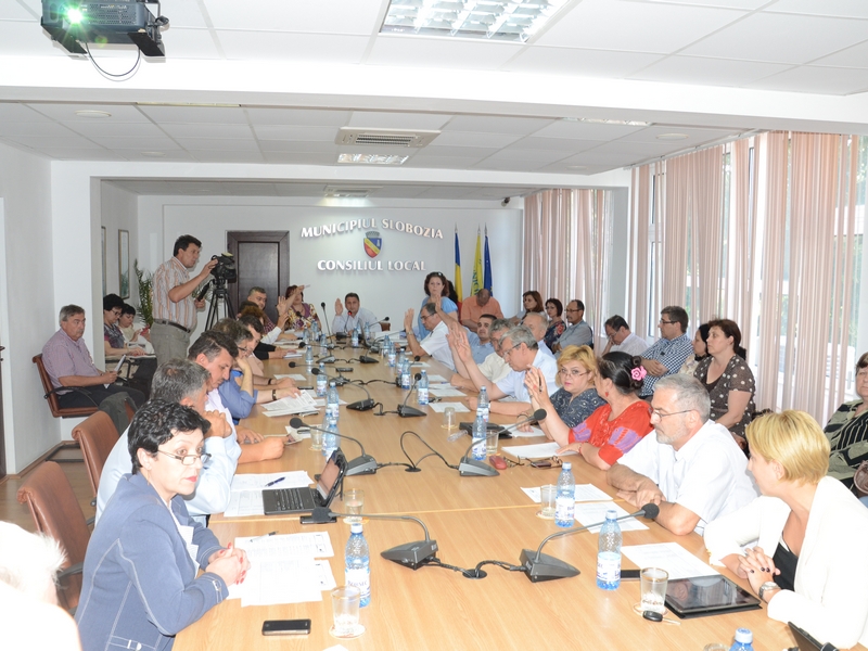 sedinta 10 la 10 (1)Joi, 26 iunie 2014, Consiliul Local Slobozia s-a reunit într-o ședință ordinară, în cadrul căreia erau propuse spre aprobare un număr de 18 proiecte de hotărâri. Imediat după începerea ședinței, primarul Alexandru Stoica a retras două proiecte, referitoare la aprobarea unui PUD(Plan Urbanistic de Detaliu) pentru amenajarea unui salon de evenimente, precum și aprobarea unei concesionări fără licitație publică pentru Oyl Company Logistic. Această retragere a proiectelor a adus mari nemulțumiri în rândul partidelor de Dreapta, care veniseră, probabil, pregătiți să pună bețe în roate proiectelor. După începerea ședinței, spre bucuria Dreptei, Stânga a avut un om în minus, mai exact Vasile Olaru, care se află în„ focuri” în acestă perioadă, candidând (iarăși) pentru funcția de manager al Spitalului, motiv pentru care, pentru prima dată în Consiliul Local, Dreapta a dezechilibrat Stânga. Proiectele propuse au fost respinse rând pe rând, din lipsă de cvorum. După cum spuneam, este prima dată când Dreapta a avut puterea în mâini, fapt care a enervat la culme toți membrii de Stânga ai Consiliului Local. Cel mai controversată decizie a fost cea privind „modificarea și înlocuirea Anexei la H.C.L. nr.83/2001, prin care se stabilesc inventarele care alcătuiesc domeniul public al Municipiului Slobozia”, la care doi consilieri de Dreapta au votat împotrivă, iar ceilalți 8 s-au abținut. Imediat după declararea proiectului ca fiind respins, iarăși din lipsă de cvorum, viceprimarul consiliu local DSC_1013Valentin Băcanu a mustrat Dreapta spunând : „Deci, ați dat cu piciorul la 35 milioane de lei, bani din fonduri europene. Este vorba despre campusurile școlare. Luna trecută am votat același lucru. Am fost la Cadastru, am făcut niște măsurători, s-a făcut o intabulare provizorie și ne-au obligat să venim cu o altă hotărâre de Consiliu, urmând ca această nouă hotărâre să o trimitem la Guvern pentru a obține intabularea definitivă și să putem încheia contractele de finanțare pentru cele două campusuri începute în perioada guvernării PNL, în 2008. Unul este de 20 milioane lei, iar celălalt aproximativ 15 milioane de lei. Ar fi existat posibilitatea finalizării lor până la sfârșitul anului viitor, în condițiile în care, la o lucrare atât de mare, ar fi lucrat toate firmele de construcții din oraș. ”. Cezar Zamfir, viceprimar până mai ieri, după ce toată perioada cât s-a aflat în funcția de viceprimar nu a avut nici păreri, nici reclamații la nici unul dintre proiectele propuse în timpul mandatului, surprinzător acum, după DSC_5605demiterea sa, a prins glas, acesta încearcând acum să găsească fel de fel de motive pentru a se face auzit. „Ce-ar fi fost dacă dumneavoastră, executivul, ne-ați fi informat așa, cu detalii și să ne chemați pe toți să discutăm, pentru că toți suntem în slujba cetățenilor. Faptul că încă nu avem încă o relație funcțională, este o problemă”, a declarat Cezar Zamfir. În sprijinul său a venit și Mădălin Teculescu, care a adăugat : „ Este rușinos că ați venit cu astfel de argumente, domnule viceprimar. Dacă se ținea cont de propunerea pe care am făcut-o anul trecut, legate de necesitatea elaborării de cărți funciare pentru tot ceea ce înseamnă domeniul public și privat al municipiului, nu ne-am fi trezit în situația asta” . Și alți consilieri s-au declarat nemulțumiți de unele aspecte de investiției, cerând mai multe investigații la fața locului, înainte de aprobarea proiectului.În zona în care trebuie construit unul dintre cele două campusuri, este o situație complicată. Conform P.U.G., strada George Enescu merge tocmai până la intersecția cu calea ferată. Conform documentației care este acum depusă la Cadastru, strada George Enescu se oprește la terenul de sport. Dacă așa vreți să fie…blocăm strada, ocolim pe alte străzi, că așa vrem noi. Dacă vrem să facem aceste investiții doar de dragul unor investiții pe bani europeni în detrimentul populației, mi se pare, personal, o mare greșeală.”, a adăugat Sorin Brânză, consilier local din partea UNPR.
