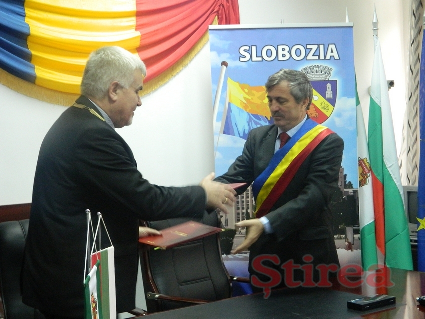 În data de 17 aprilie 2014, s-a semnat la Slobozia protocolul de înfrăţire dintre oraşul Razgrad din Bulgaria şi municipiul Slobozia. Timp de două zile, o delegaţie de la Razgrad condusă de primarul Dencho Boyadziev se afă în vizită în municipiul nostru. Pe parcursul vizitei au fost stabilite obiective comune ale celor două unităţi administrative, s-au planificat colaborări culturale dar şi în domeniul turismului.Scopul înfrăţirii celor două oraşe, este acela de a facilita atragerea de fonduri europene ţinând cont de faptul că oraşele înfrăţite pot beneficia de fondurile europene direct de la Bruxelles.
