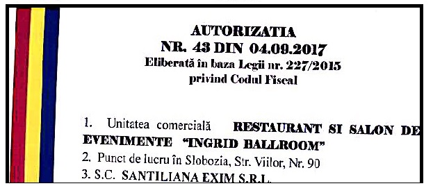 Totul e bine când se termină cu bine. Aşa consideră şi firma care deţine în portofoliu afacerilor şi-acest restaurant a cărei autorizaţie poartă, iată, nr. alocat în luna septembrie, a anului de graţie 2017. Şi patronii sunt fericiţi să comunice şi prin intermediul presei că „ urmare a cererii adresată de dl. Zărnescu Ion în calitate de administrator S.C. SANTILIANA EXIM S.R.L deţine Autorizaţile, firmei fiindu-i certificată realizarea măsurilor de securitate la incendiu, dar şi că poate desfăşura